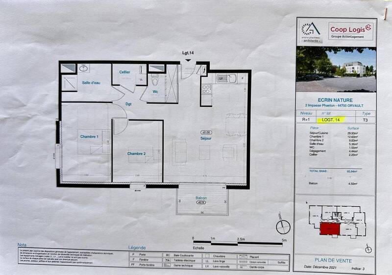 ORVAULT, à proximité du centre commercial Leclerc, restaurants et transport en commun et sortie de Nantes, appartement de Type 3, situé au 1er étage d'une résidence récente et exposé Sud, au calme sur l'arrière, comprenant : une entrée avec placard, un séjour lumineux donnant sur un balcon sans vis à vis, une cuisine ouverte aménagée et équipée (plaques vitro, hotte et frigo), un cellier avec branchement machine à laver, 2 chambres de belle taille, une salle d'eau, wc.