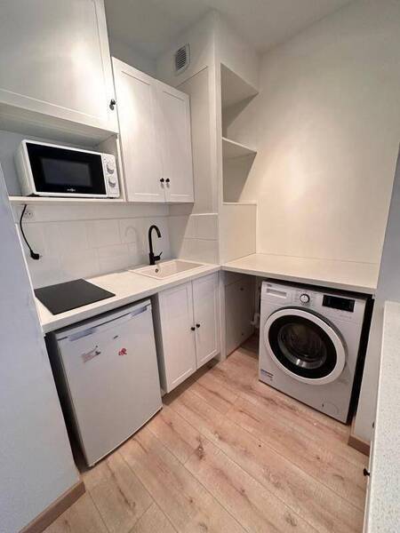 NANTES - Hyper-centre, prenez place dans ce très beau studio entièrement rénové et meublé avec goût. Il est composé d'une entrée avec meuble chaussures, une pièce de vie avec coin nuit, cuisine aménagée et équipée (plaques, frigo, micro-ondes, lave-linge), une salle d'eau avec WC. Une cave.