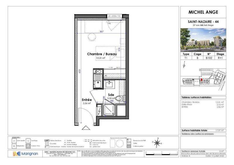 SAINT-NAZAIRE - Quartier OCEANIS. Dans une résidence récente (2023) proche de l'IUT et des commerces, appartement Studio comprenant : une entrée, une pièce de vie, un coin kitchenette équipé ( plaques, hotte, frigo), une salle d'eau avec wc. Conditions de ressources Loi Pinel .