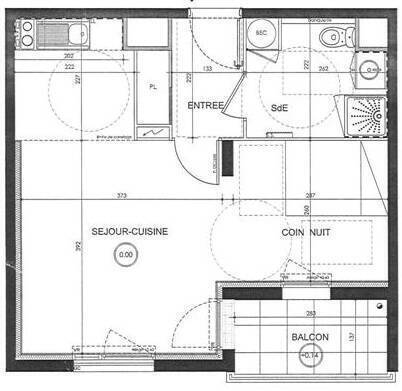NANTES - Quartier Procé. Appartement T1 bis comprenant: entrée avec placard, un séjour sur parquet avec cuisine ouverte aménagée et équipée de plaques et d'un réfrigérateur donnant sur un balcon, coin nuit sur parquet, salle d'eau avec wc.