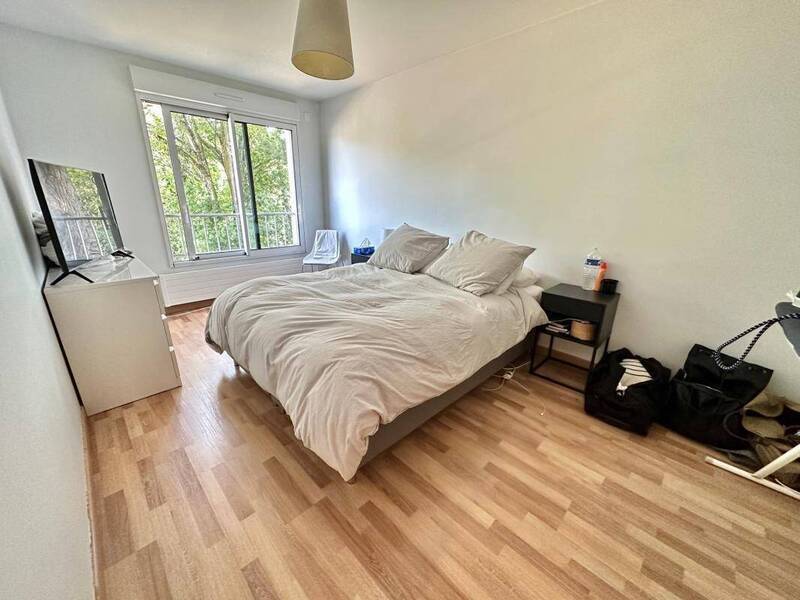NANTES. Quartier recherché. Dans un environnement calme et verdoyant, bel appartement T2 composé d'une entrée avec placard, un séjour sans vis à vis, un balcon, une cuisine ouverte aménagée et équipée (plaques vitro et hotte), une salle d'eau spacieuse avec fenêtre, une grande chambre. Parking privatif et cave.