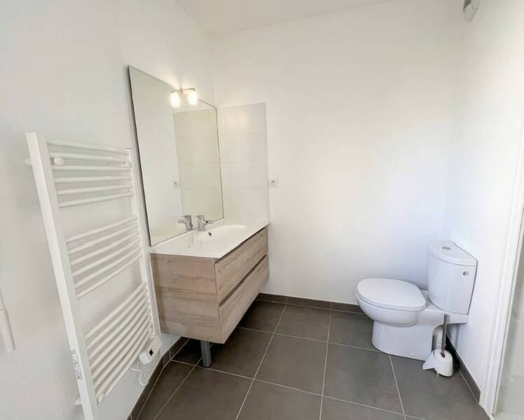 L'entrée dispose d'un placard intégré, la pièce de vie lumineuse s'ouvre sur une agréable terrasse, la cuisine ouverte est entièrement aménagée et équipée d'une hotte, de plaques et d'un frigo top, une chambre et une salle d'eau avec wc.