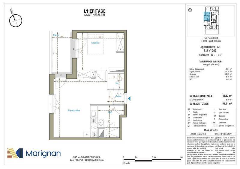 SAINT HERBLAIN. Dans une résidence récente, un appartement Type 2 comprenant : une entrée, un séjour donnant sur un balcon, une cuisine ouverte aménagée et équipée (plaques et hotte), une chambre donnant sur le balcon, une salle, wc séparés. Parking. Conditions de ressources Loi Pinel. « Les informations sur les risques auxquels ce bien est exposé sont disponibles sur le site Géorisques : www.georisques.gouv.fr »
