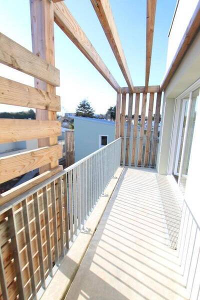 BOUGUENAIS, dans une résidence de 2022, type 3 comprenant: une entrée avec placard, un séjour donnant sur balcon sur l'arrière au calme, une cuisine ouverte aménagée et équipée d'une hotte et de plaques, deux chambres, une salle d'eau, wc séparés, dégagement. Deux parkings. Conditions de ressources Loi Pinel
