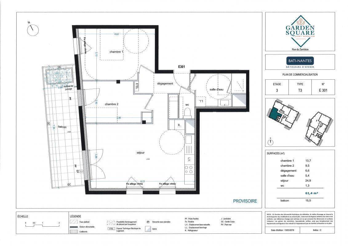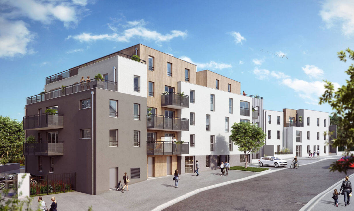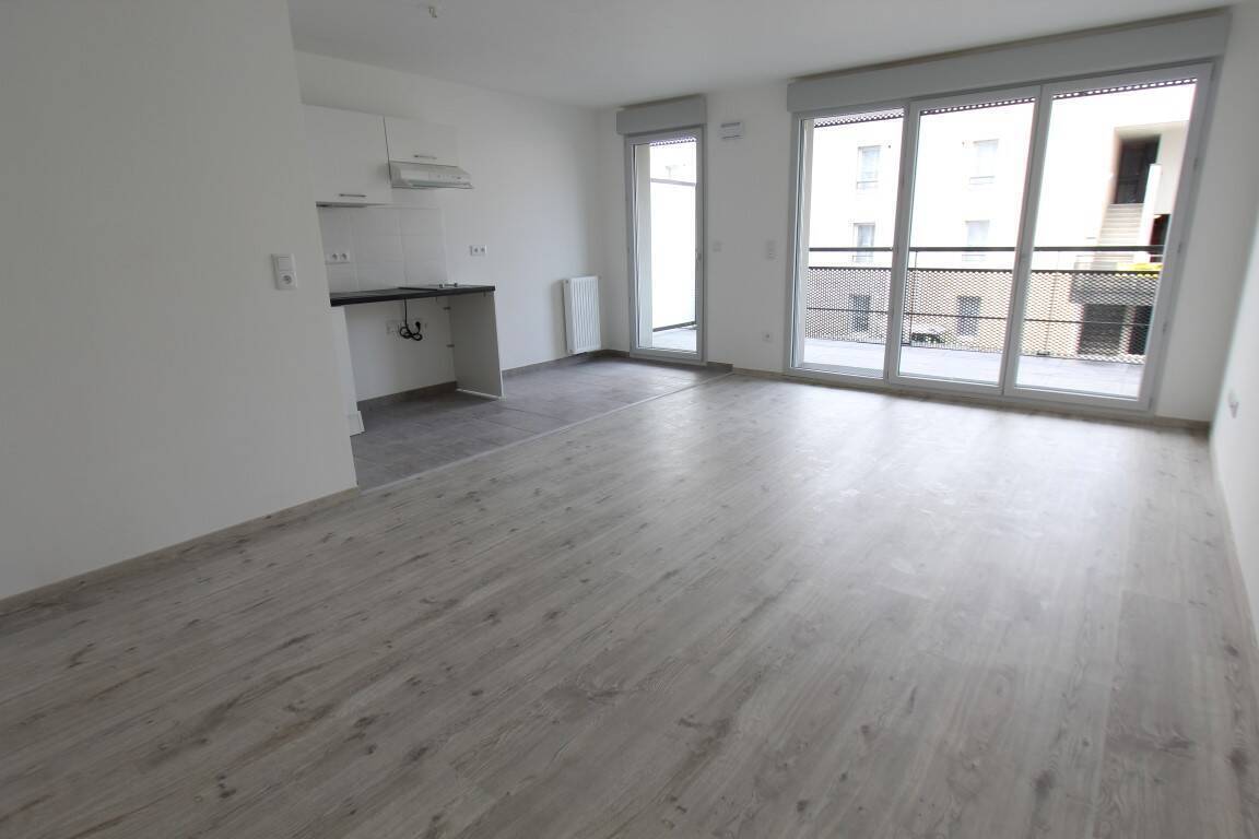 SAINT-HERBLAIN. Dans résidence BBC, proche tramway et commerces, agréable type 3 comprenant un séjour de 28.80m² avec cuisine ouverte aménagée et équipée ( plaques 4 foyers et hotte) le tout donnant sur une terrasse de 5.50m², 2 chambres, salle d'eau, wc, entrée avec placard. Parking.Logement soumis à la Garantie des Loyers Impayés (GLI).