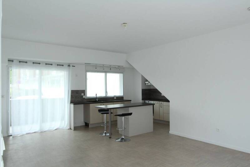 NANTES - QUARTIER BOTTIERE/CHENAIE, maison de ville contemporaine, de Type 3, comprenant : Une entrée, un séjour donnant d'un coté sur une terrasse de 18m² et un jardin de 71.48 m² et de l'autre coté donnant sur un balcon de 17.85 m² côté rue, une belle cuisine ouverte aménagée et équipée d'une hotte, de plaques, d'un four et d'un combiné frigo/congélateur, deux chambres équipées chacune d'un placard, une salle d'eau, wc séparés. Box fermé. Cabanon dans le jardin. Logement soumis à la Garantie des Loyers Impayés (GLI).