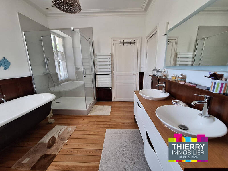 Les pièces de réception sont spacieuses et baignées de lumière, la cuisine contemporaine, une family room permet à chacun de disposer de son espace. Vous disposerez de: 5 chambres (6 possibles dont une en rez-de-jardin), 2 bureaux , 2 dressings, 3 salles de bains/d'eau, 1 lingerie/buanderie, 1 cave à vins. A l'extérieur, vous bénéficierez de 2 terrasses, d'une piscine chauffée, d'un grand jardin aux arbres classés, d'un puits et de nombreux stationnements. Une dépendance à rénover offre de nombreuses possibilités: locatifs, appartements indépendants, atelier d'artiste, salle de musique, stockage.