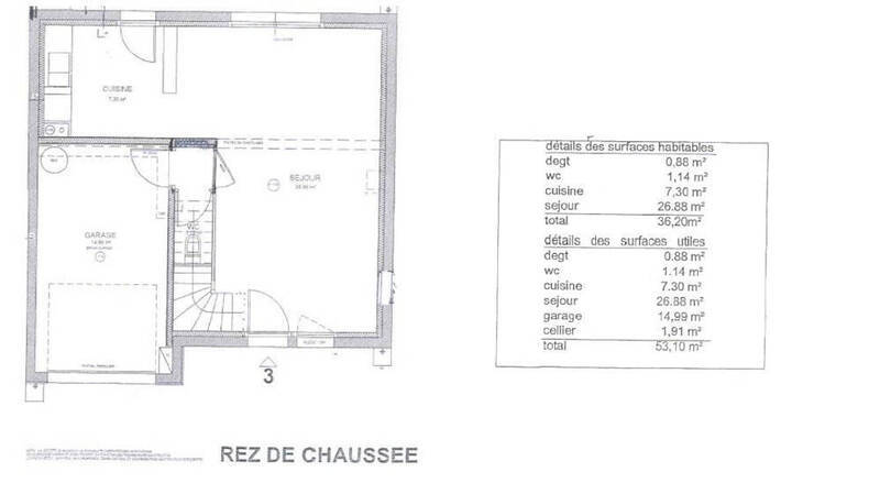 Le rez-de-chaussée s'ouvre sur une pièce de vie lumineuse de 35 m² intégrant salon, séjour et cuisine, ainsi qu'un WC indépendant. L'étage est dédié à l'espace nuit avec trois chambres confortables, une salle de bains et un second WC séparé.