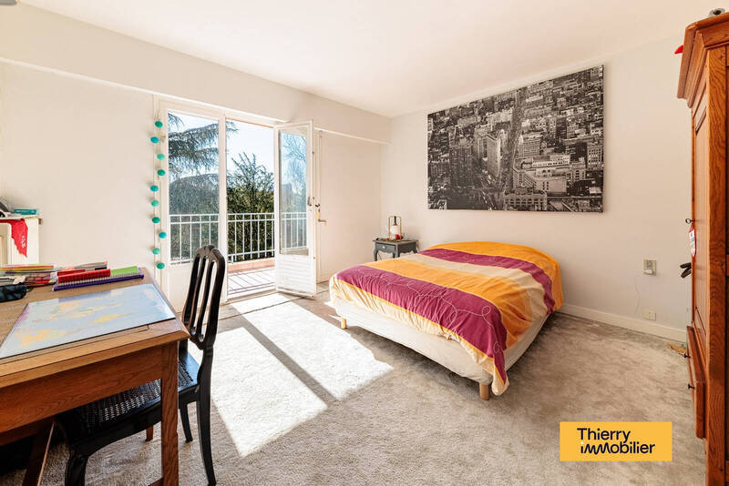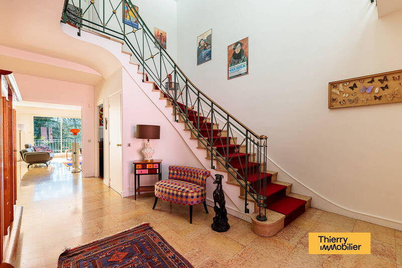 Elle se compose, au rez-de-chaussée, d'une vaste entrée, d'un salon-séjour donnant sur un balcon vue sur ce beau jardin, d'une cuisine aménagée et équipée, d'un bureau et d'une buanderie.